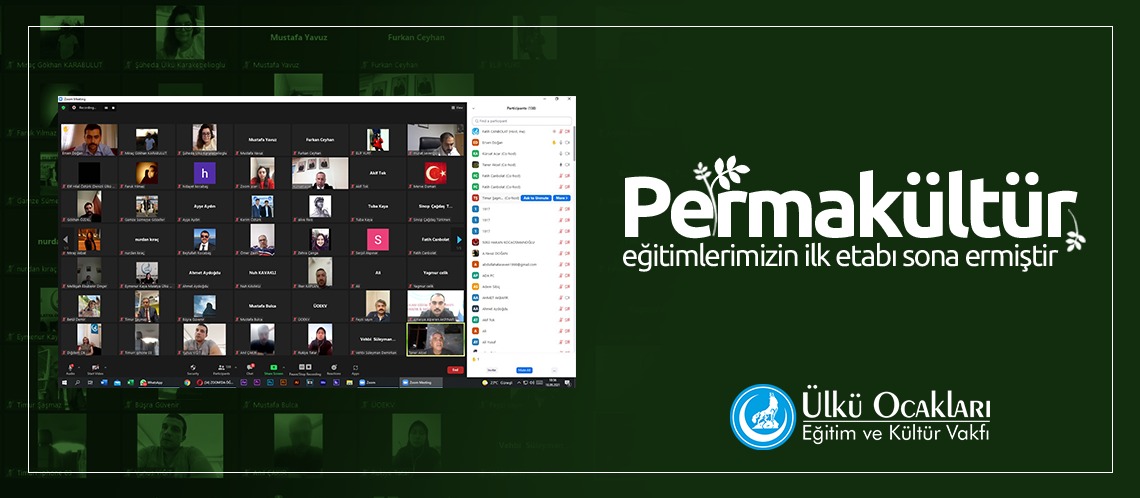 Ülkü Ocakları Eğitim ve Kültür Vakfı Genel Merkezi tarafından başlatılan Permakültür projesinde eğitim faaliyetlerinin ilk etabında sona gelindi. Ülkü Ocakları Genel Başkanımız Sayın Ahmet Yiğit Yıldırım tarafından duyurulan sürdürülebilir tarım-permakültür çalışmaları yapılan çevrim içi eğitimlerin ilk haftası tamamlandı.