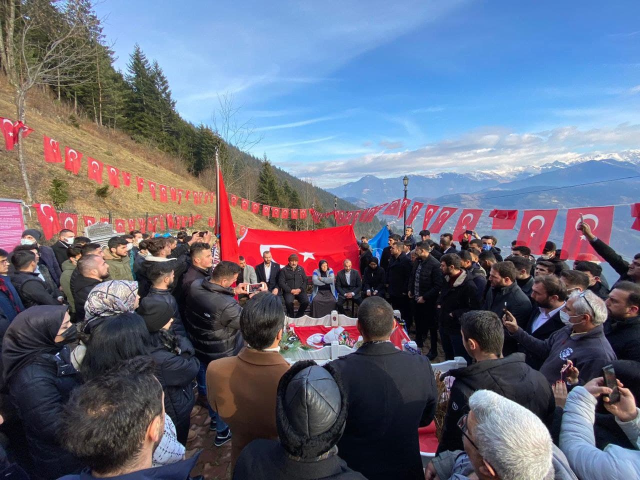 Trabzon Ülkü Ocakları olarak, şehrimizin medar-ı iftiharı olan şehidimiz Eren Bülbül'ün annesi Ayşe annemizi ziyaret edip, evin hemen yanında olan kabri şerifte Kuran-ı Kerim tilaveti gerçekleştirdik. Çevre ilçe ocaklarımızın da yoğun katılımıyla gerçekleşen bu ziyaret için il başkanlığımızca günlerdir hazırlanılmakta olup buluşmanın şehidimizin doğum gününe denk getirilerek hem Eren'in can kardeşlerinin farkındalığını arttırmak hem de ailesine bu zor gününde güç vermek amaçlanmıştır.
